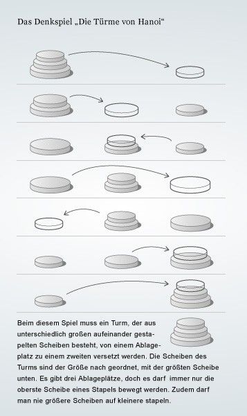 „Wir wissen jetzt, dass Gestik Gedanken beeinflussen kann, aber der Mechanismus hinter diesem Effekt ist noch unklar“, fassen Goldin-Meadow und ihre Kollegin Sian Beilock in einem 2010 erschienenen Übersichtsartikel den Stand der Forschung zusammen. Allerdings haben sie eine Vermutung: So könnten Gesten möglicherweise ein motorisches Wissen transportieren, das uns kognitiv noch nicht bewusst geworden ist. Diesen Zusammenhang untersuchten sie in einem weiteren Versuch: Erwachsene Testpersonen sollten das „Türme von Hanoi“-Knobelspiel lösen, bei dem ein Stapel verschieden großer Ringe umgeschichtet werden muss. Anschließend sollten sie die gefundene Lösung mit Worten und Gesten erklären und dann eine weitere Runde spielen.